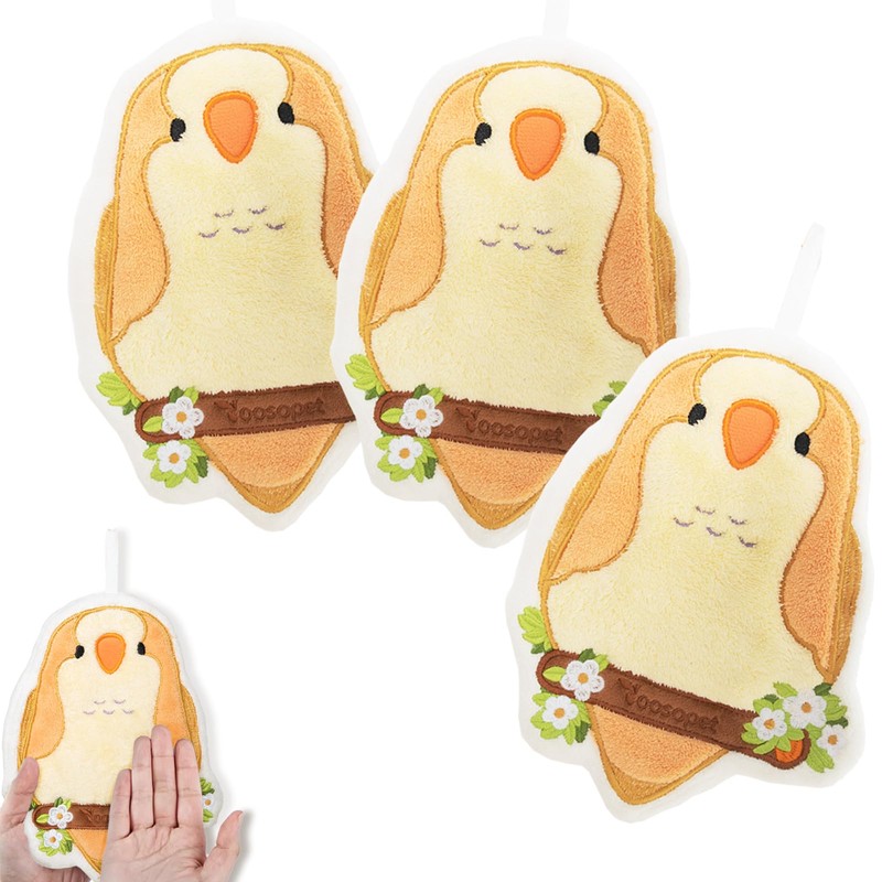 YOOSO WING 3枚セットリング付きタオル オウムハンドタオル コーラルフリースハンドタオル 吸水性 速乾性 ふわふわ かわいいオウム柄 家庭用 キッチン 洗面台 保育園 ギフトに最適 23*19cm (クエーカーパロット)
