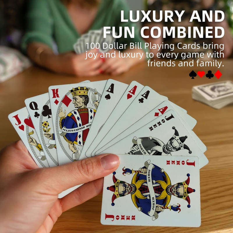 Our deck of cards have dollar pattern on the front as our unique feature, these card deck bring a fresh and stylish twist to traditional card games, making the deck of card a conversation starter at any gathering.