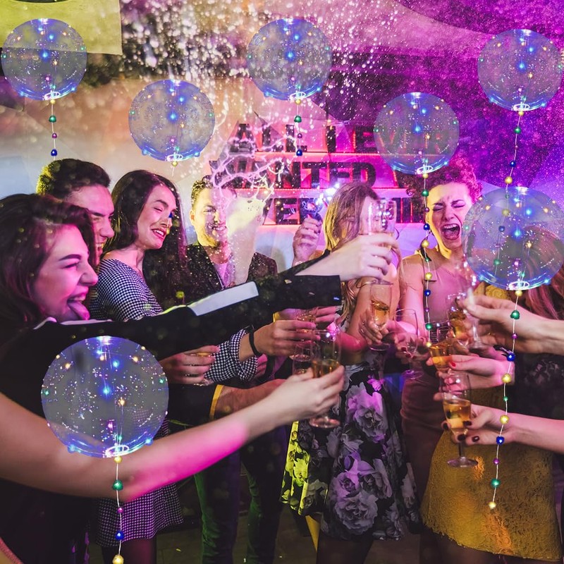 Yootiko 15 Stück LED Leuchtende Luftballons, 20 Zoll Bobo Helium Ballons LED Leuchtende Ballons Klare Luftballon Hochzeit Luftballons Wiederverwendbar Leuchtende Ballons für Geburtstag Bunt