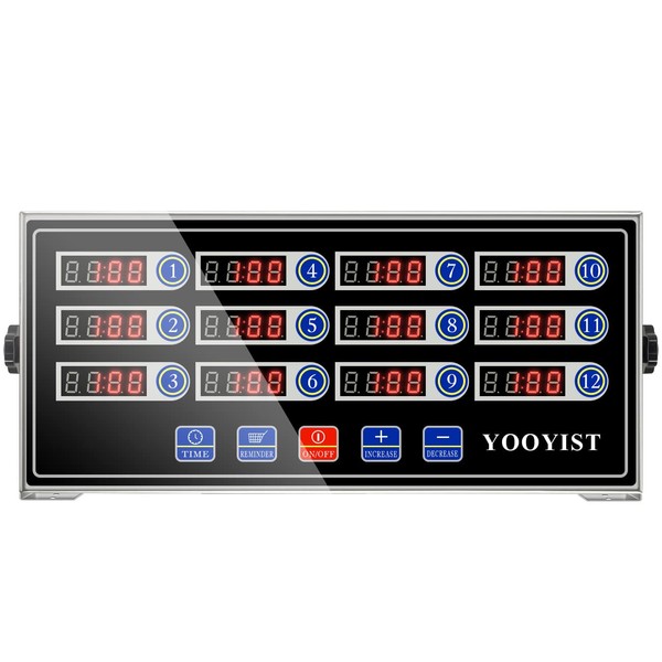 YOOYIST Commercial Kitchen Timers 12 Channel Stainless Steel LED Digital Timer Reminder Function, Loud Alarm, Black