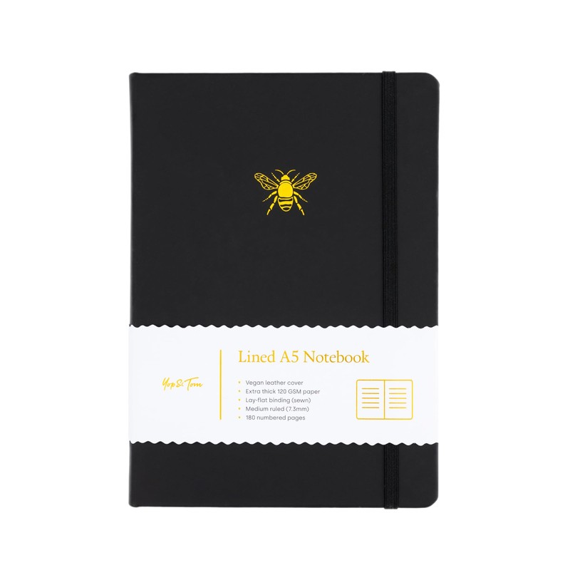 Yop & Tom Bee Lined Journal - Notebook With Beautiful Faux Leather Cover and Extra Thick 120 GSM Paper - Charcoal