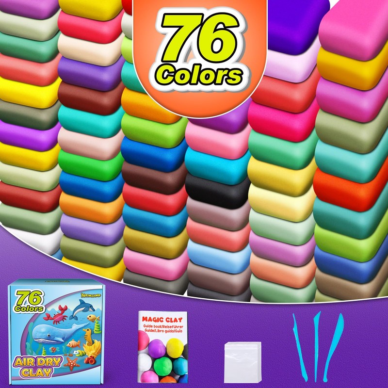 YOPINSAND Air Dry Clay 76 Colors, Modeling Clay for Kids, DIY Molding Magic Clay, Gift for Kids