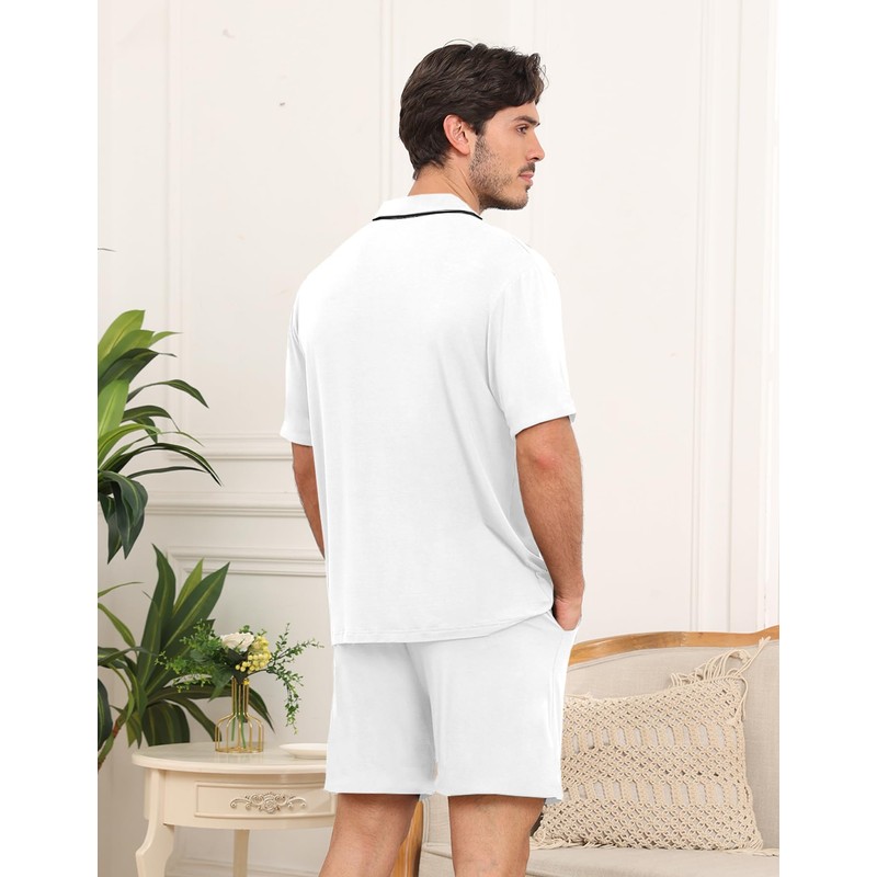 - Classic Design: The button-up men pjs top offers easy wear with an adjustable opening, while the contrast notch neck adds stylish layering. A chest pocket and shorts with two pockets hold essentials, the elastic waistband ensures a comfy fit for all body types