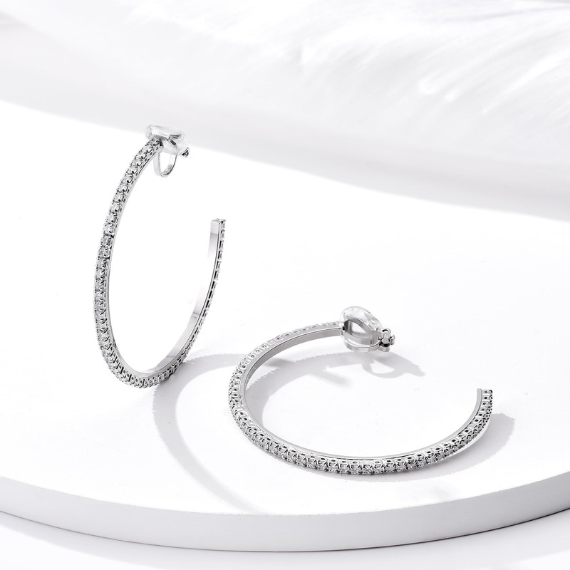 YOQUCOL 5.5CM(2.2in) Silver Clip On Hoop Earrings Cubic Zirconia Non Pierced Ears Hoops for Women