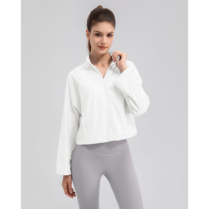 YOQYO Women's Lightweight Zip Up Athletic Workout Cropped Jacket UPF 50+ Sun Protection Shirt White M