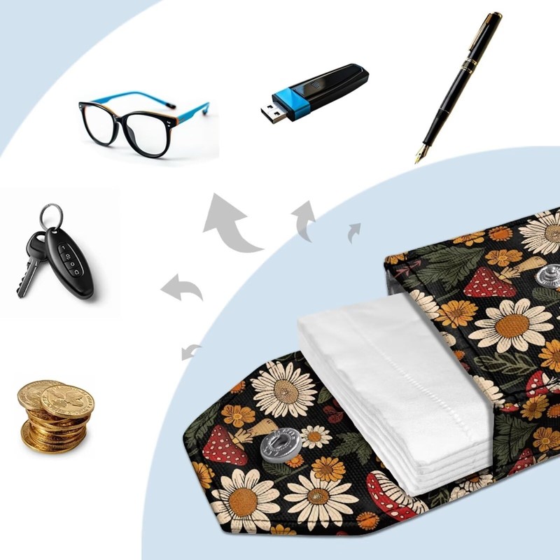 Yorfeemge Purse Tissue Packs Lightweight Canvas Tissue Bag Travel Tissue Pouch for Coins Paper Keys Decorative Tissue Holder for Daily Mushroom Daisy