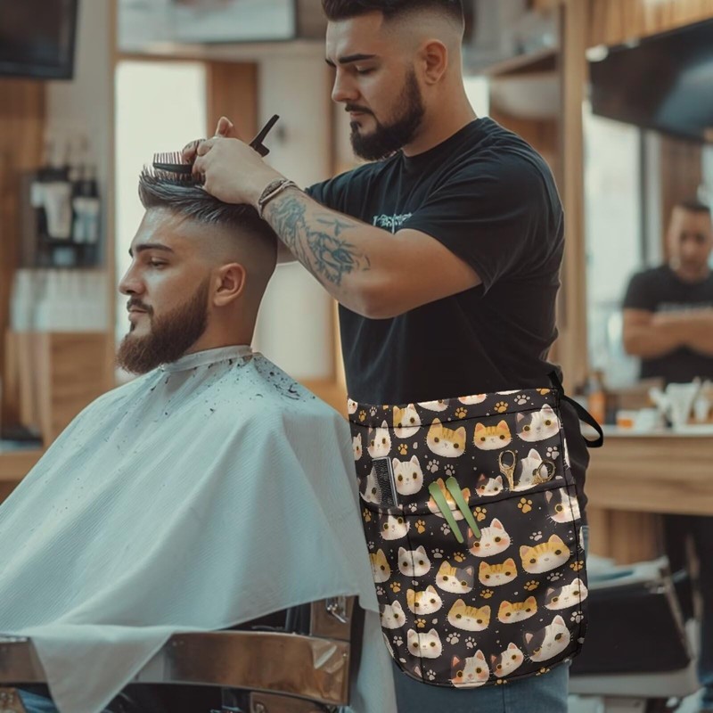 The waiter apron is neatly cut with delicate hemming stitching on the edges. The pattern of the waiter apron is printed with heat transfer technology and is not easy to fade.