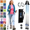 Poles adjust easily using our exclusive flip locks that quickly snap (and stay) in place, and are much better than traditional twist locks. We've even included detachable rubber feet, and snow / beach baskets that all fit in a foldable black nylon travel bag. Expand from 32 to 54 inches making it easy to adjust to any height from children to adults up to 6'2". (81.3 to 137.1 cm) Weight: x oz each (x as a pair). Weight limit of 230 lbs.