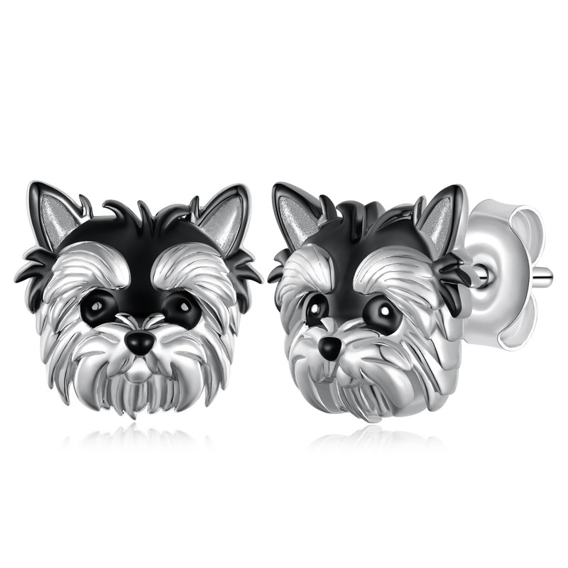 - Design Source: Yorkie small cute, cheerful and lively personality, very brave and clever, make it also get more dog lovers love, become one of the most popular pet dogs. These captivating sterling silver earrings feature a meticulously crafted dog. Boasting intricate detailing and a striking black and silver color scheme, Whether you're a proud pet parent or simply appreciate the playful charm of these furry companions, these Yorkie earrings are sure to elevate your look with a touch of whimsical sophistication.