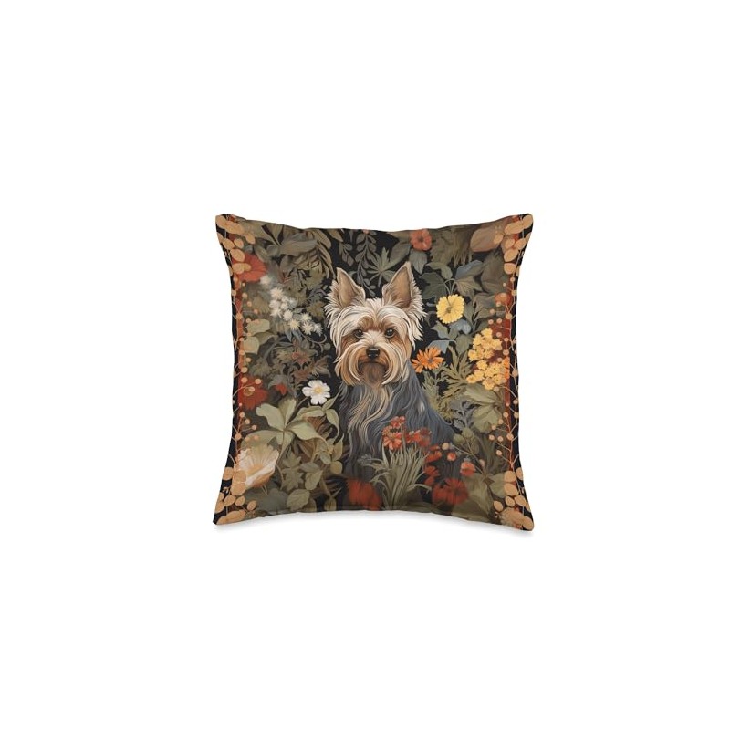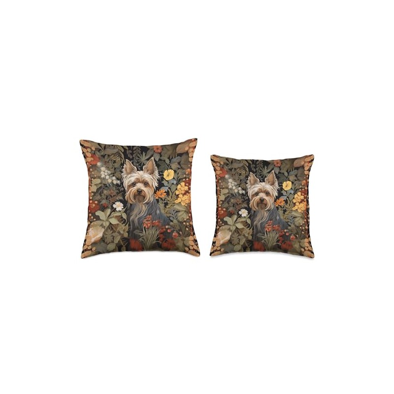 Yorkie or Silky Terrier William Morris Style Tapestry Throw Pillow