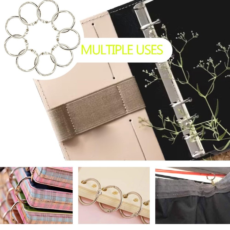 Book ring is a good hook for DIY home projects,can be used as loose-leaf ring, shower curtain hook, curtain ring, memo filing, key ring, flash card holder and sample holder etc.