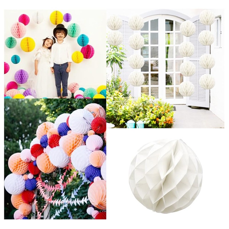Yosawo Pack of 8 Paper Honeycomb Balls Paper Honeycomb Ball Decoration for Birthday Wedding Party Decoration (ZQ/White)