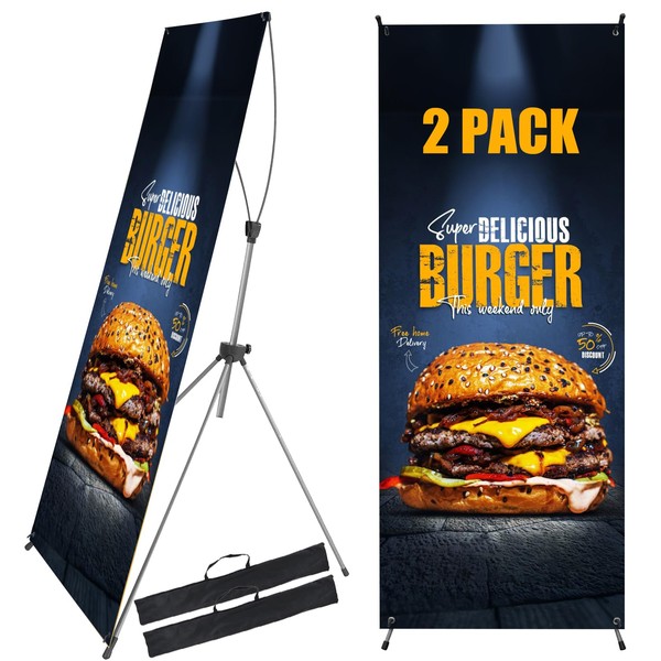 YOSE X Banner Stand (2 Pack) , Retractable Banner Stand with Aluminum Tripod Base, Carbon Fiber Arms and ABS Parts, Banner Holder for Events, Custom Retractable Banner for Outdoor Marketing