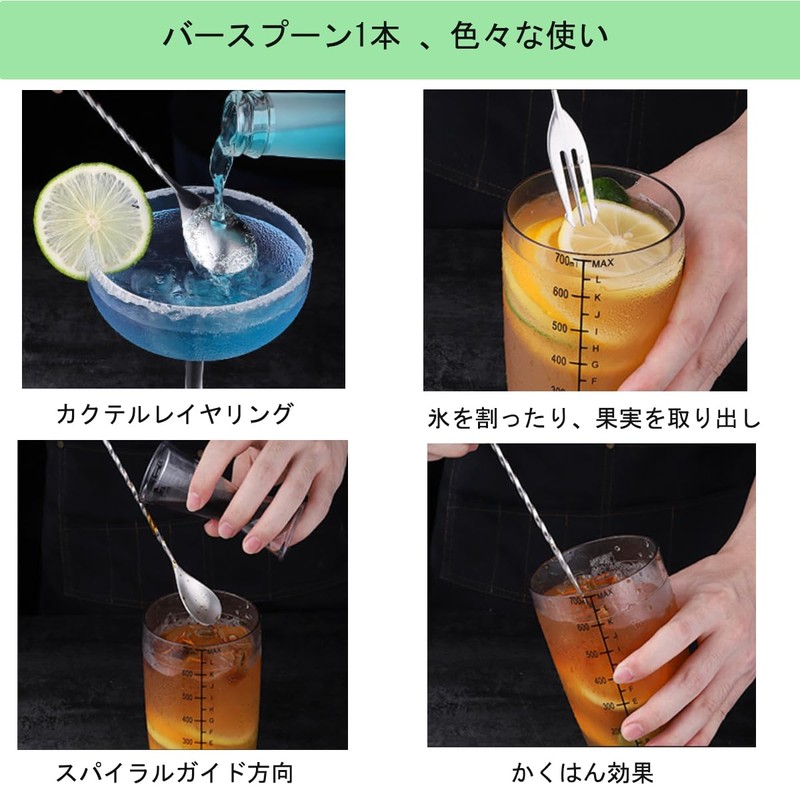 - (Spiral Handle Design) The cocktail spoon has a non-slip spiral handle design, smooth lines, and fast rotation will not sharpen your hands, and the layers of conduction are more delicate