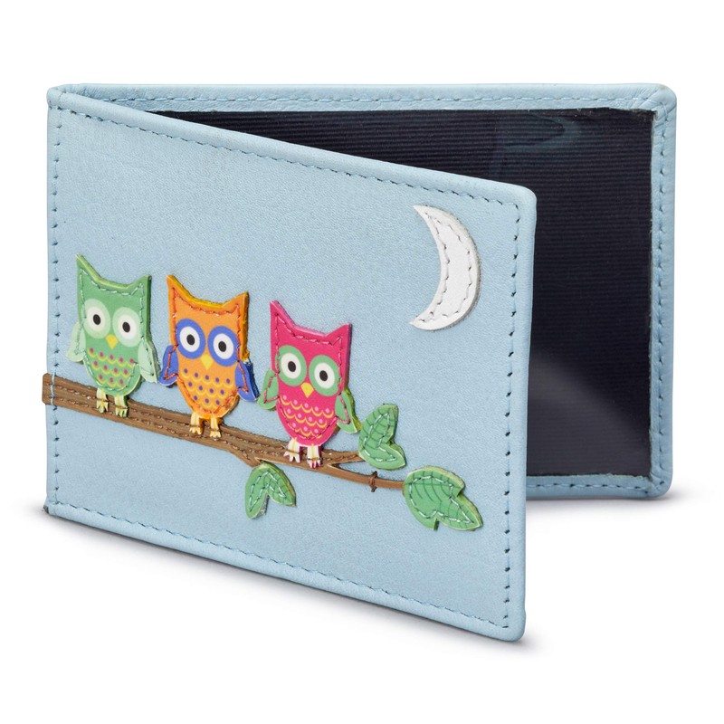Yoshi Owl Applique Leather Oyster Card/Travel Pass Holder (Blue)