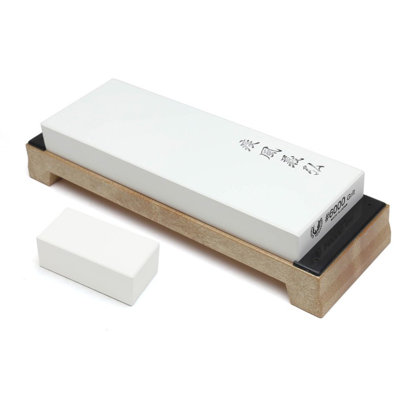 At Yoshihiro we offer 3 different grades of stones that run the gamut from coarse to fine and are essential tools for proper knife care. A #1000 grit Arato stone is best used for repairing damaged and very dull knives. The stone is abrasive which takes off a lot of material for refashioning a dull edge. A #3000 grit "Nakato Shiage" stone is best used for creating a sharp polished edge. This stone is necessary to maintain the blade's edge and is recommended for routine sharpening. An #8000 grit "Shiage" Fine Finishing stone is best used for creating an even more refined and honed edge.