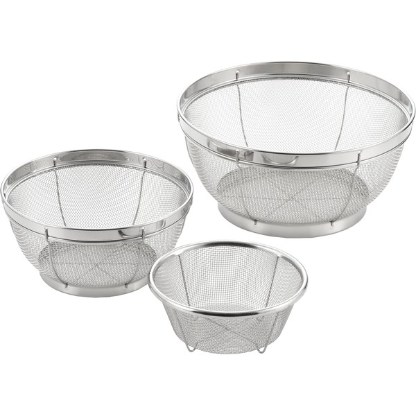 Yoshikawa Mizulead II Stainless Steel Colander, 3 pcs (15, 19, 25 cm)