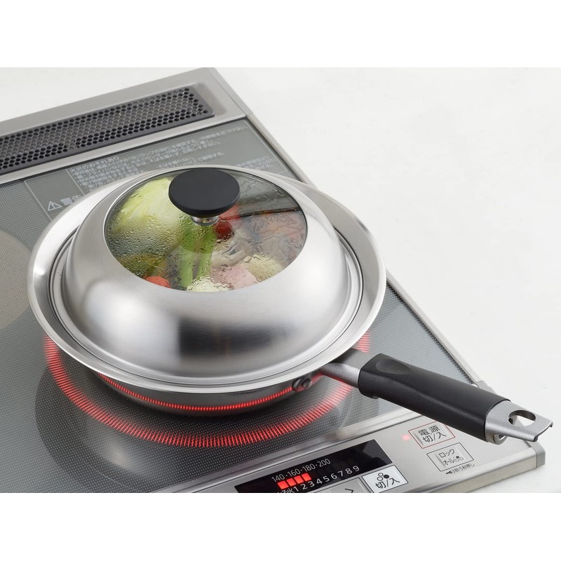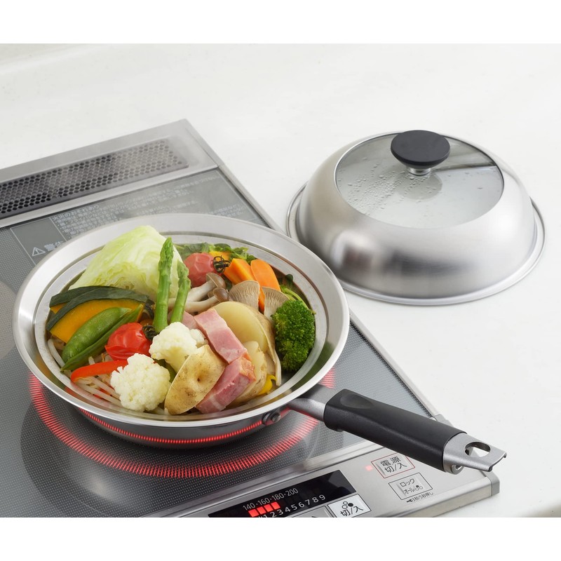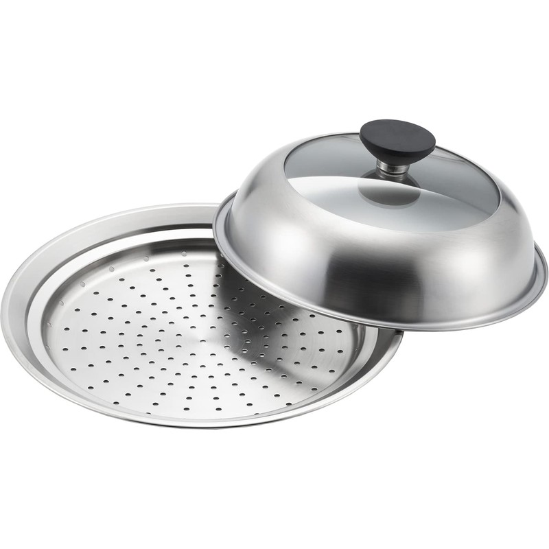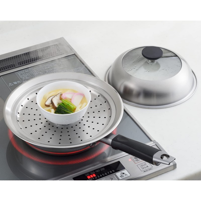 Yoshikawa YJ3211 Steamer Plate for Stacking With Frying Pans, 7.9 - 8.7 inches (20 - 22 cm), Transparent Lid Included, Keep an Eye on Steaming Status