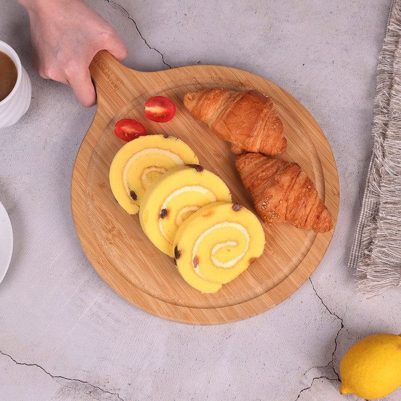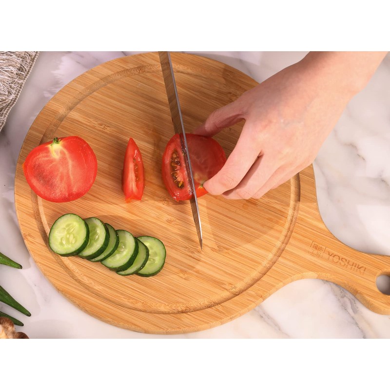 YOSHIKI Yoshiki Workshop YK-BCB1 Bamboo Cutting Board, Round, Pizza Board, Bread Stand, Natural, Lunch Plate