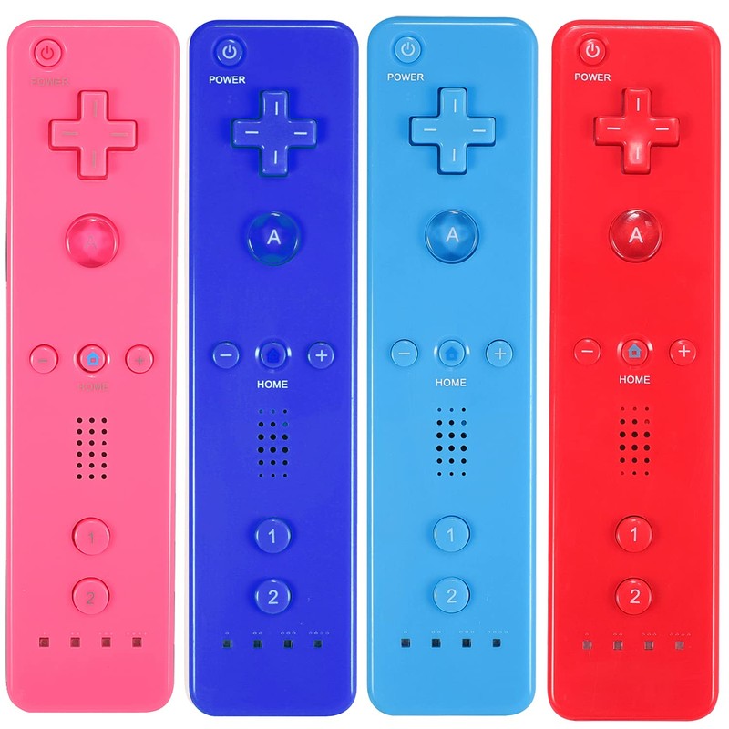 Controller for Wii, Remote Controller for Wii with Silicone Case and Wrist Strap Compatible for Wii/Wii U (4 Pack, Pink+Deep Blue+Blue+Red)