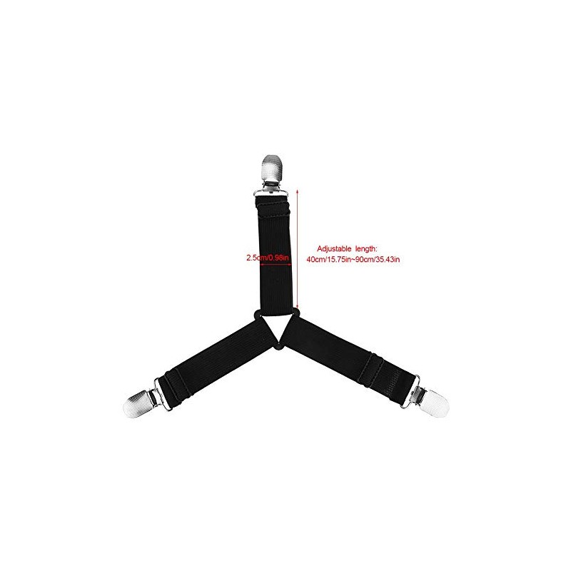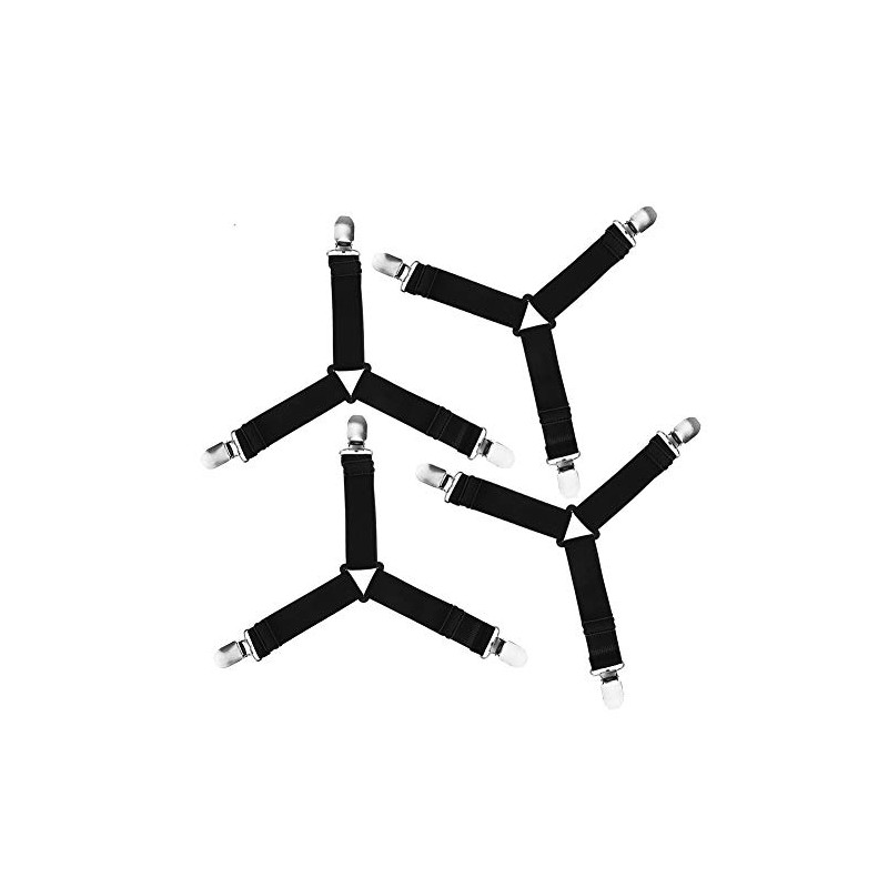 Yosoo 4 Piezas Sujetadores para Sábanas, Soporte Triangular Ajustable para sábanas y colchones, Correas, Clips, Sujetadores (Negro)