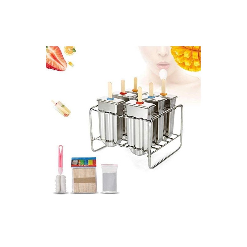 Yosoo Ice Lolly Mold Stainless Steel Popsicle Mold Ice Cream Mould with Stainless Steel Stick Holder Base Lolly Maker Set Ice Pop Mold DIY Ice Cream Mould Maker Freezer Set of 6