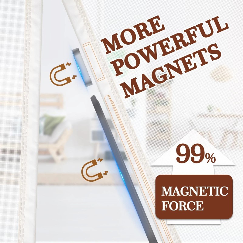 UPGRADED AND STRENGTHENED: The magnet screen door is wrapped with thickened webbing in four sides, more sturdy than other fabrics, not easy to break. Thicker thread used in the whole stitching; 6 needles per inch, more close and apparently sturdier than most other products which is three and a half needles per inch