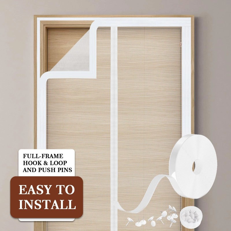 PACKAGE INCLUDES: The package includes a polyester magnetic screen door, plus a roll of hook&loop, a pack of push pins and instruction manual, ensures quick and easy installation and removal. Let us know if any problem, we provide timely response and solution