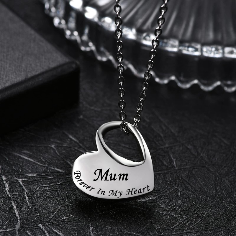 - ♥Keepsake Ashes Necklace: Heart pendant is engraved with "Forever In My Heart", high precision instrument engraved black font for clearer reading. It can be filled with the ashes of a loved one and he/she will accompany you in another way.