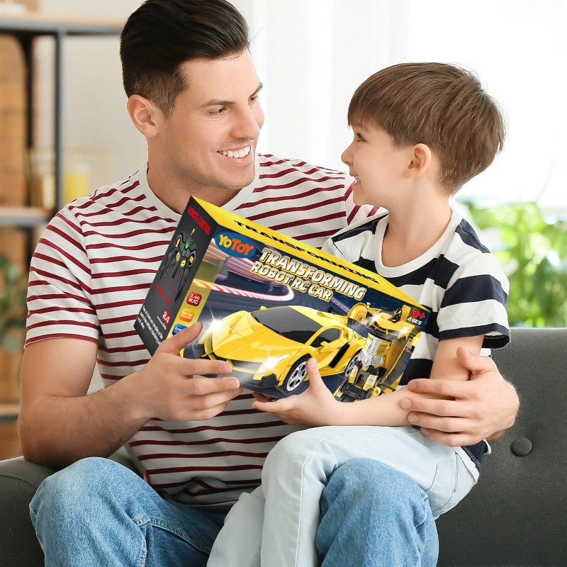 Transforming Feature: One-button transformation from RC car to robot, offers dual functionality with easy mode switching, provides an exciting and engaging play experience