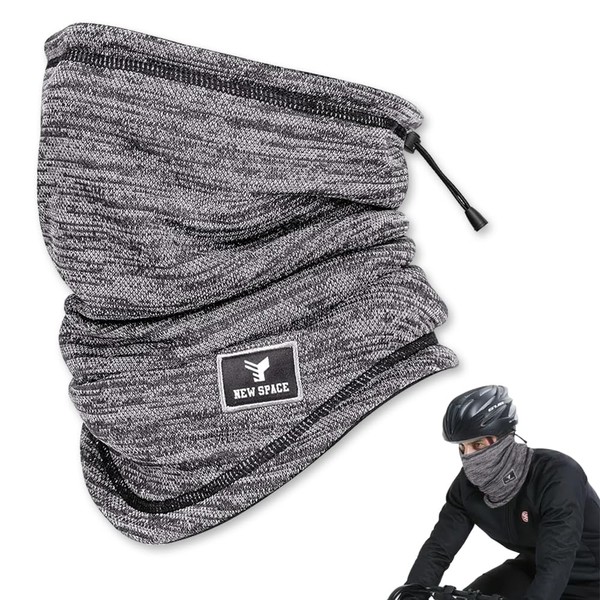 yotutun Men's Winter Thermal Neck Tube with Drawstring Fleece Neck Warmer Scarf with Drawstring Multifunctional Scarf Loop Scarf for Winter Sports, Motorcycle, Bike, Ski, gray