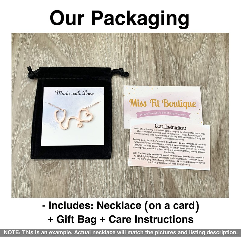 - PACKAGING: All necklace orders come packaged on a small card inserted in a clear cellophane self-adhesive sleeve with a black velvet bag and a care instructions card.