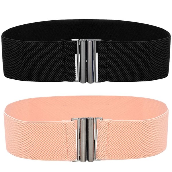 YOU&M - Cinturón elástico ancho y elástico para mujer, hebilla simple clásica para vestir, Negro y rosado, L