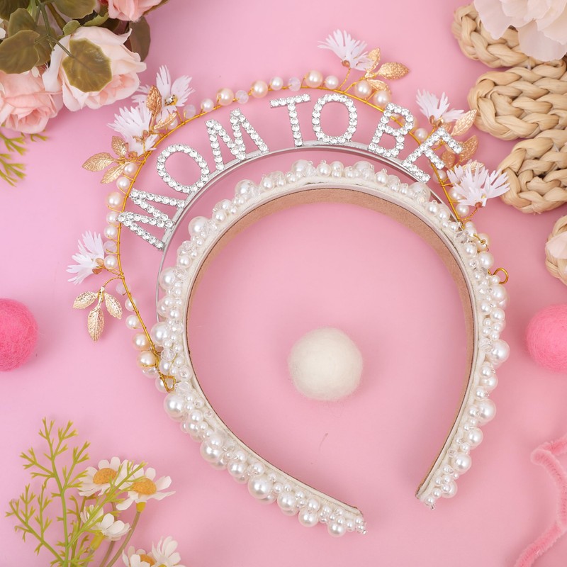 - SIZE OF BABY SHOWER MOM HEADBAND: 17*20*4 cm for the pearl and artificial diamond headband which is suitable for the adults.