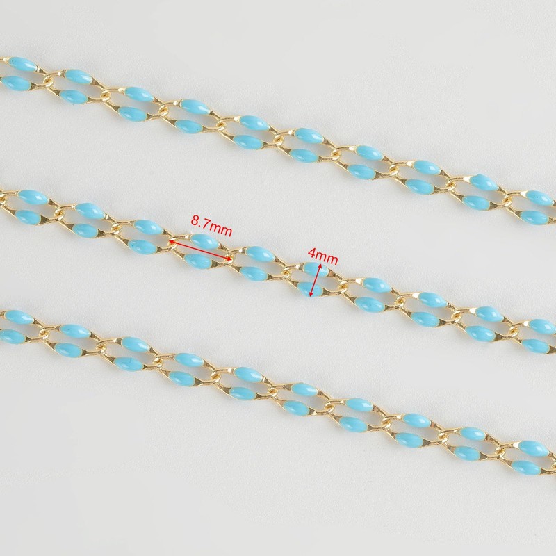 Color: Blue enamel gold plated brass chain