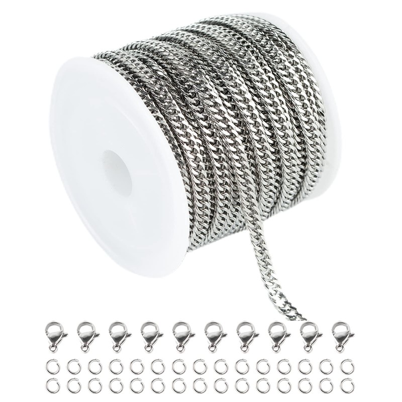 - Wide Applications- The silver stainless steel cuban chain is perfect for men, women jewelry making like necklaces, chokers, bracelets, anklets, earrings, body chains, which can be worn alone or matched with most sized charm pendants. The stainless steel chain roll can also used for jewelry repairing, craft project decorating, or making a key chain, dog tag chain, purse chain, etc