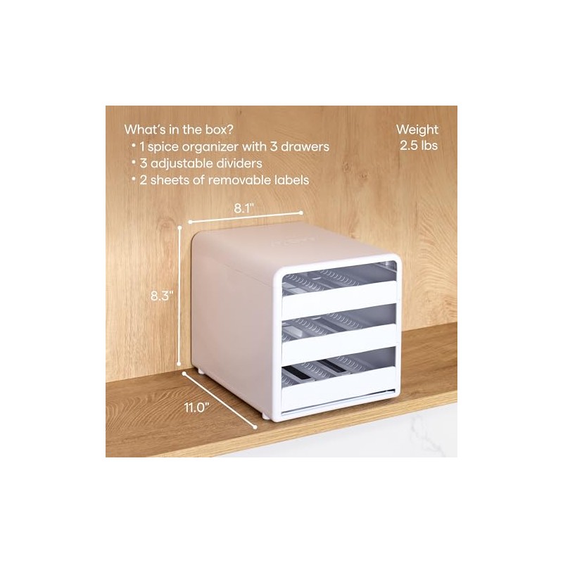 - SPICES WITHIN REACH: Three pull-down drawers bring 18+ spices (not included) to eye level while non-slip feet keep the spice rack in place