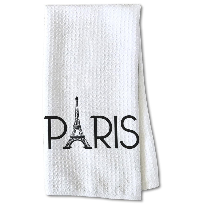 YouCustomizeIt Paris & Eiffel Tower Kitchen Towel - Waffle Weave - Partial Print