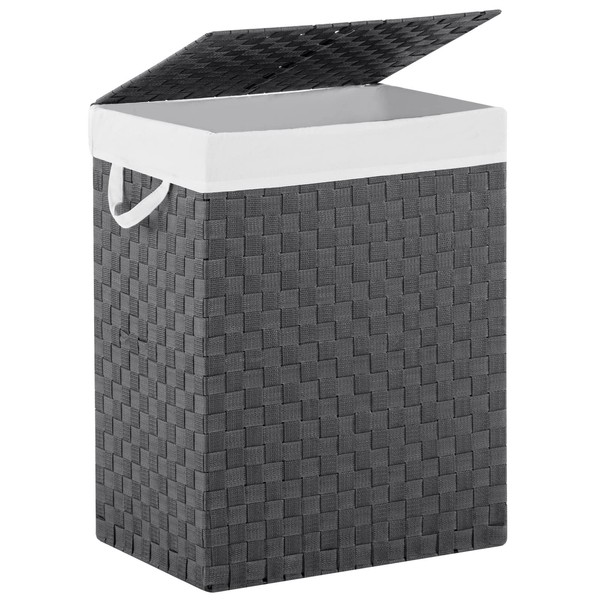 YOUDENOVA Handwoven Laundry Basket Hamper with Removable Liner Bag and Lid, Collapsible Clothes Hamper with Handle, Grey
