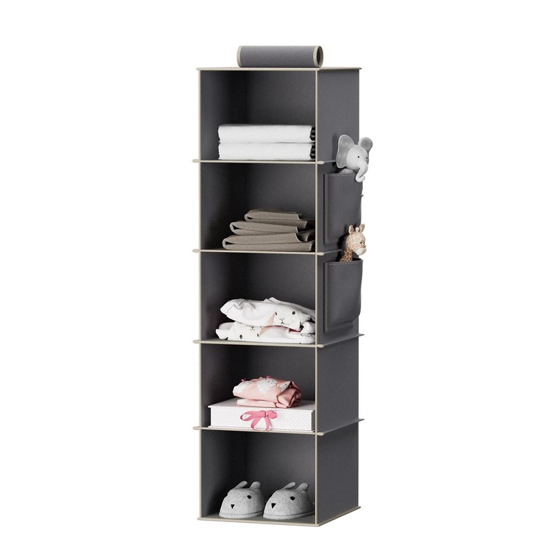 YOUDENOVA Hanging Closet Organizer, 5-Shelf Closet Hanging Storage Shelves, Grey