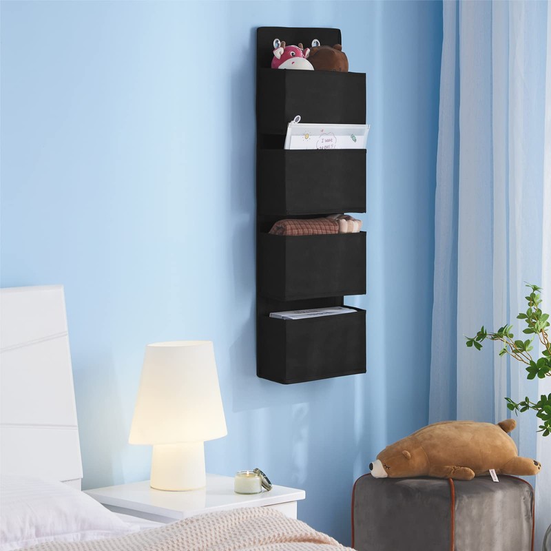 YOUDENOVA Hanging Organiser, Door Organiser, Hanging Storage with 4 Pockets and 2 Metal Hooks, Hanging Shelf, Sturdy Wardrobe Organiser, for Bathroom, Bedroom, Children's Room, Black