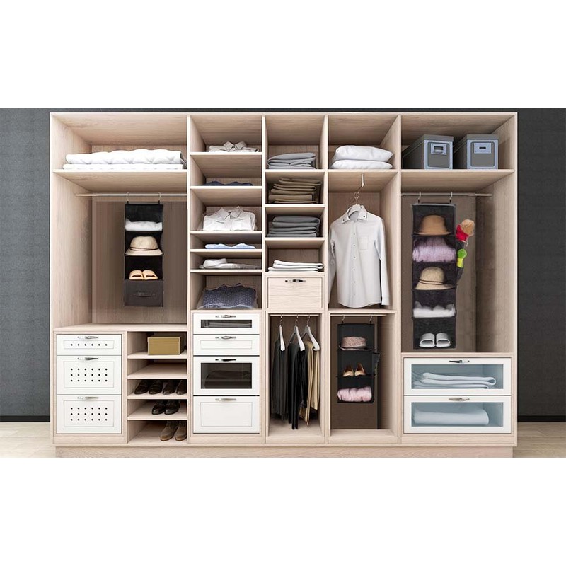 - Material: non-woven fabric and MDF board. The bamboo sticks inserted at the bottom of each compartment reinforce stability