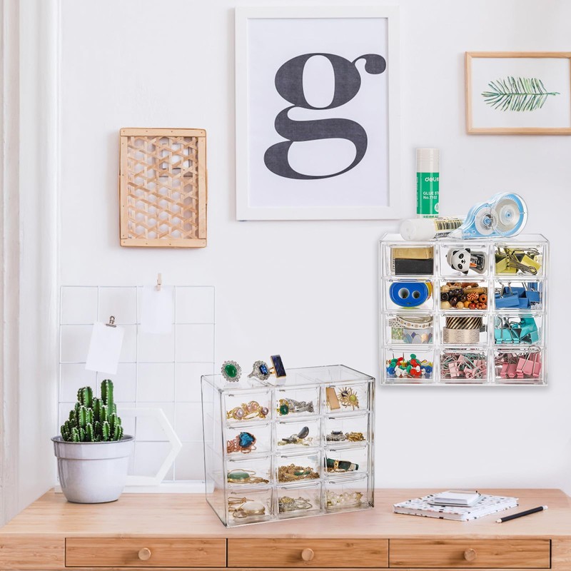 - With Removable Drawers: Our mini desk storage organizer has 12 removable drawers that can be opened independently to keep your small items separate and tidy, creating a clutter-free working environment.