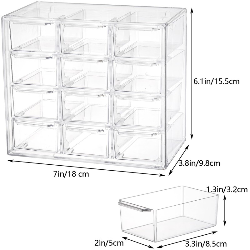 YOUEON 2 Pack Mini Desk Organizer with 12 Removable Drawers, Clear Plastic Desktop Drawer Organizer, Desk Craft Storage Box for DIY Crafts, Art Supply, Office, Cosmetic, Jewelry