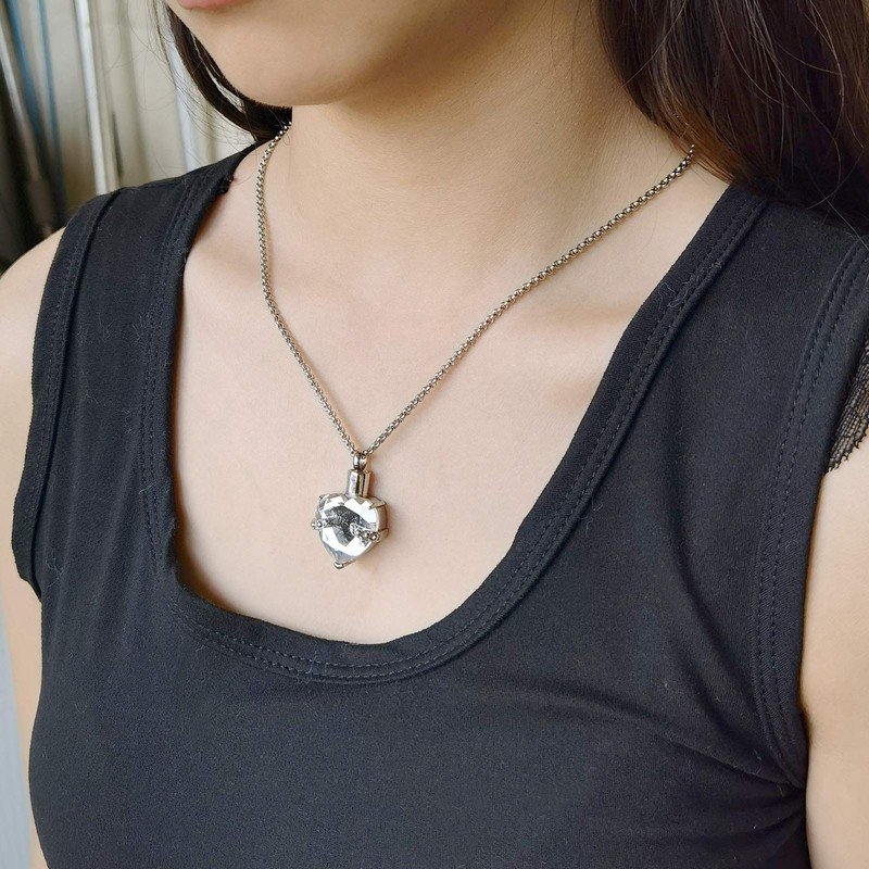 - ❤SIZES❤: Love Heart Cremation Urn Necklace with 316L Stainless Steel chain length : 60cm /24" .Pendant Size: 33*18mm, Weight: 23.5g.