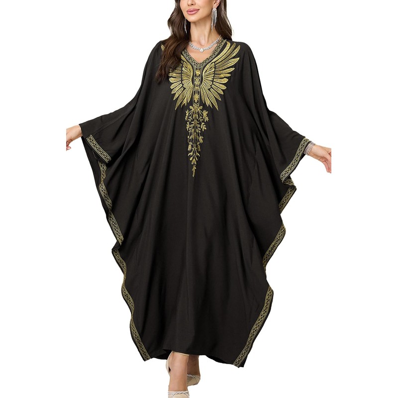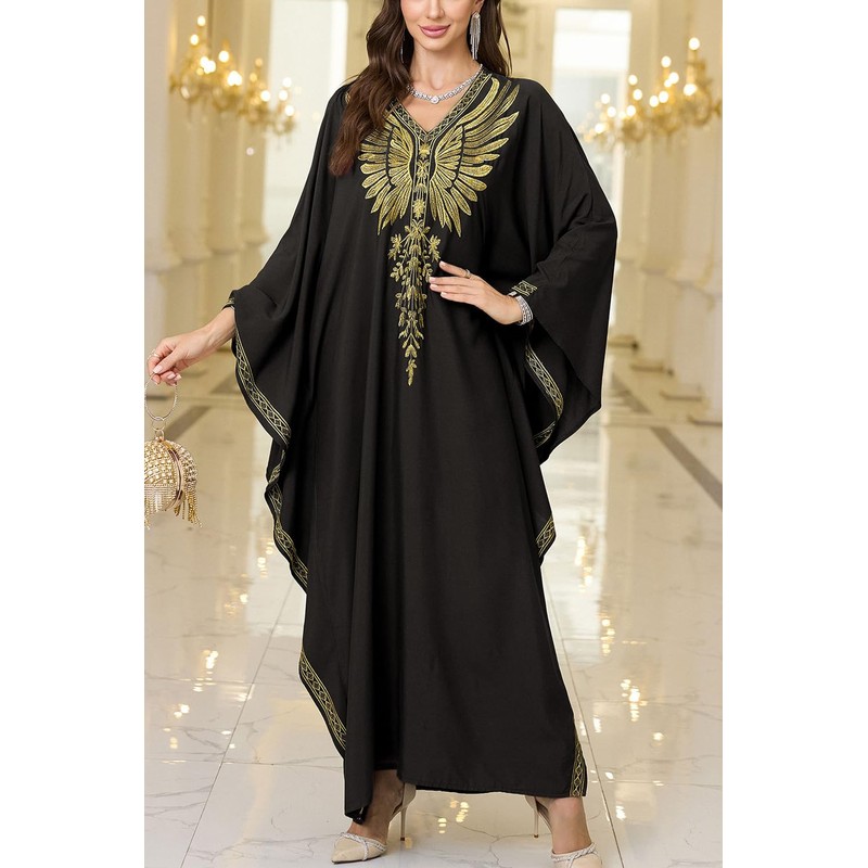 YouKD Embroidered Floral Loose Kaftan Boho Beach Bikini Cover Up Dress Plus Size Nightgown for Women