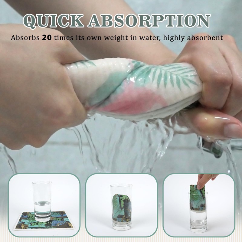 - Superior Absorbency: Each cloth can absorb up to 20 times its weight in water, making it perfect for quickly cleaning up spills and messes in the kitchen