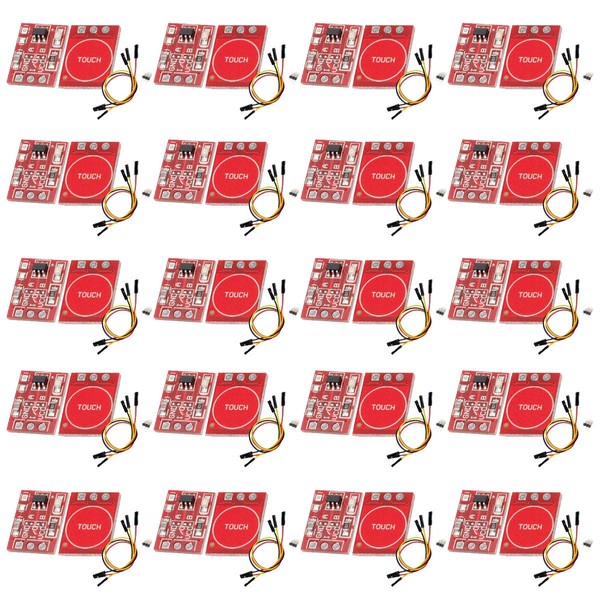 YOUMILE 20 Set TTP223 Capacitive Touch Switch Button Self-Lock Module for Arduino with 30 Pin Header Black, Yellow, Red Dupont line