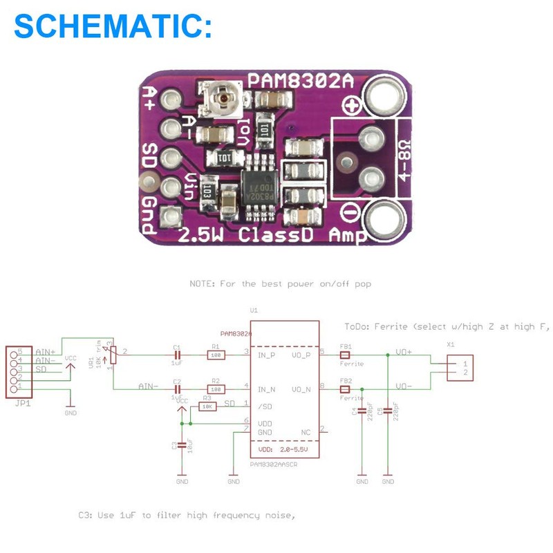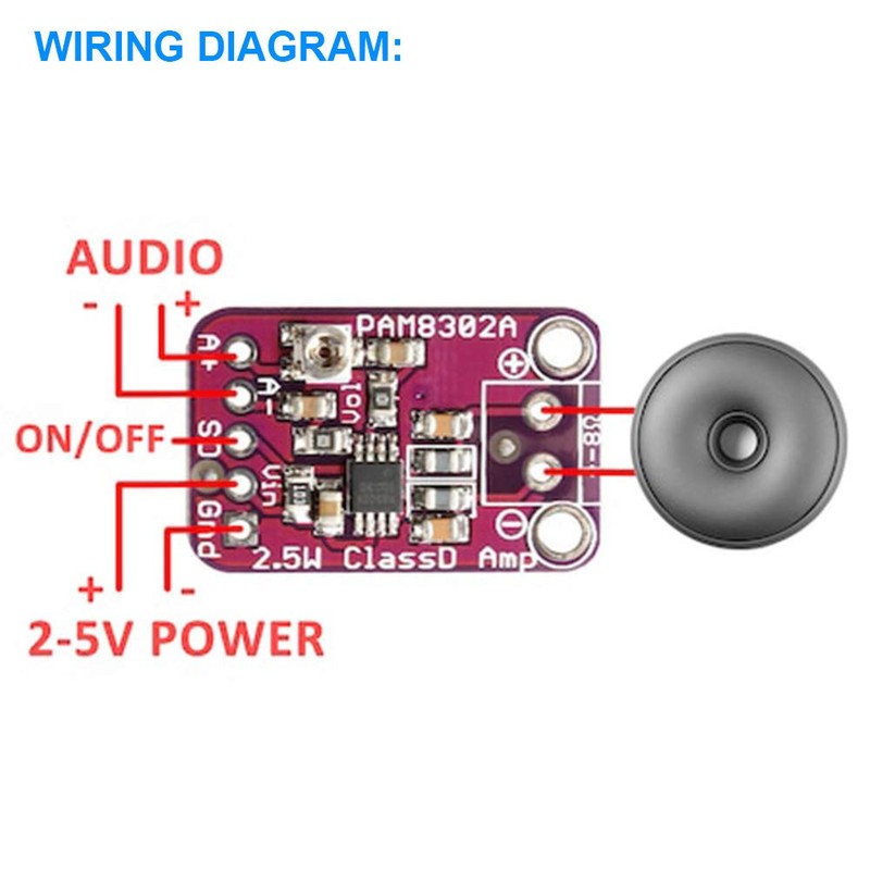 - Package Includes: 5 x PAM8302 Class D Amplifier Module, 1 x 11.8" Female to Male Dupont Cable 30PIN