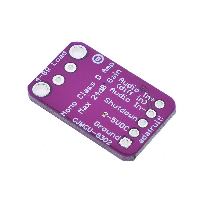 - The amplifier is class D so it is very efficient (more than 90% efficient when running 8 ohm speakers at 0.5 watts), making it ideal for portable and battery-powered projects. Built in thermal and overcurrent protection but hardly hot. There is also a volume trim pot so you can lower the volume on the board from the default 24dB gain